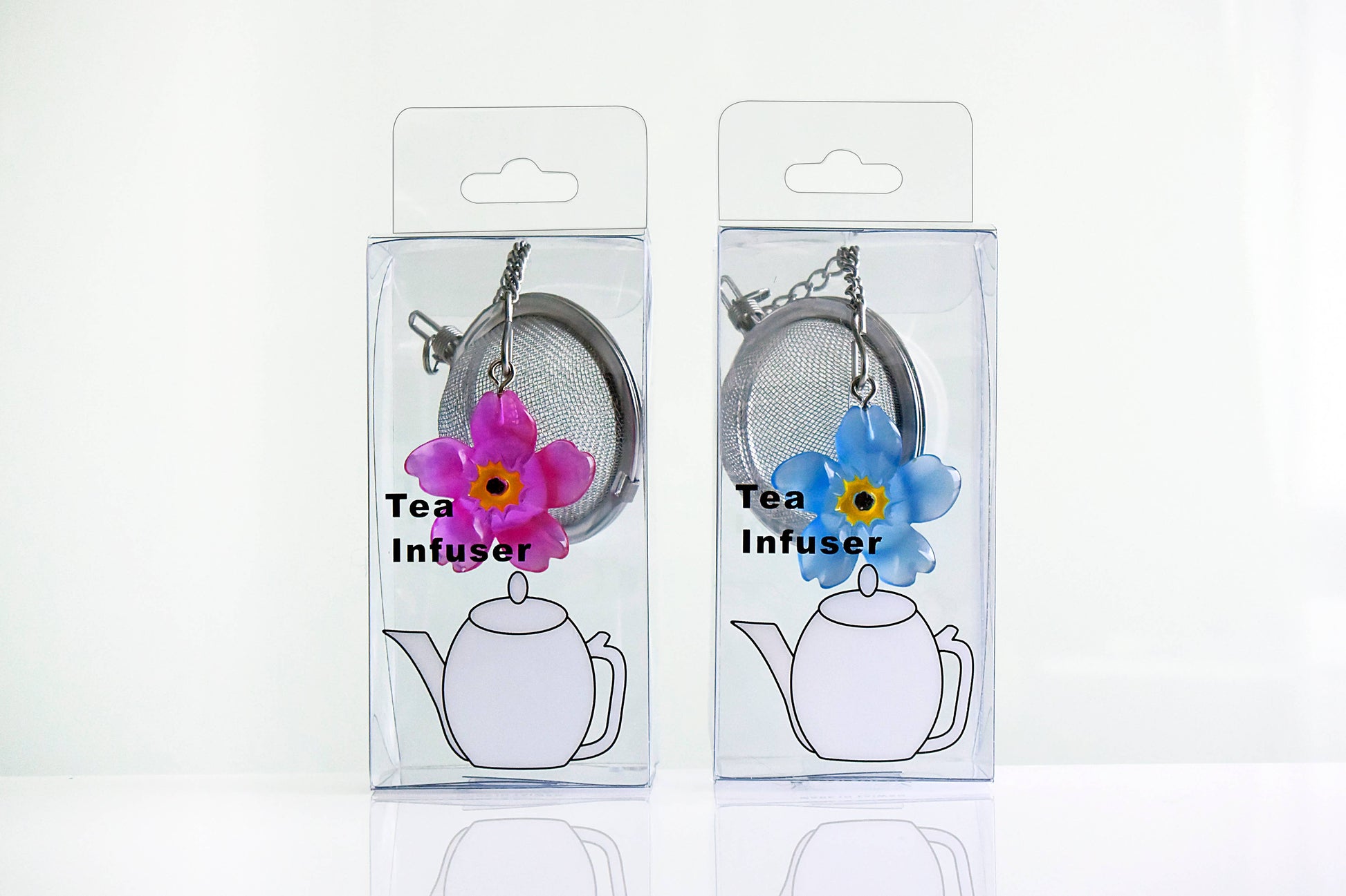 Enjoy a fresh cup of brewed loose tea with these adorable tea ball infusers. Quality stainless steel infuser with decretive pink and blue flower charms.